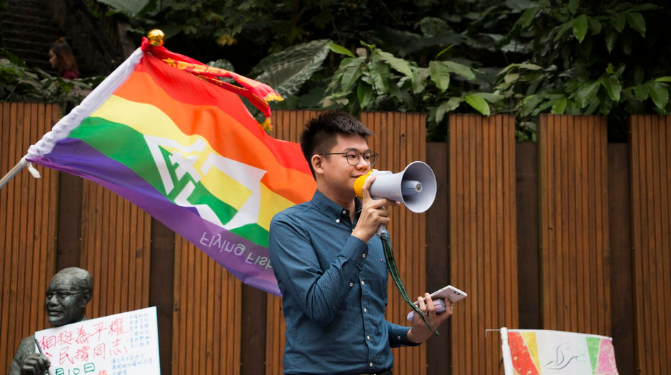 2017年正逢婚姻平權議題,同志運動相當蓬勃,我參加LGBTQ社團,並且為社團設計Logo、海報、彩虹旗等。視覺辨識不僅在校內校內活動上發會作用,也在活動登上媒體時能夠讓人辨識社團,並建立能見度。